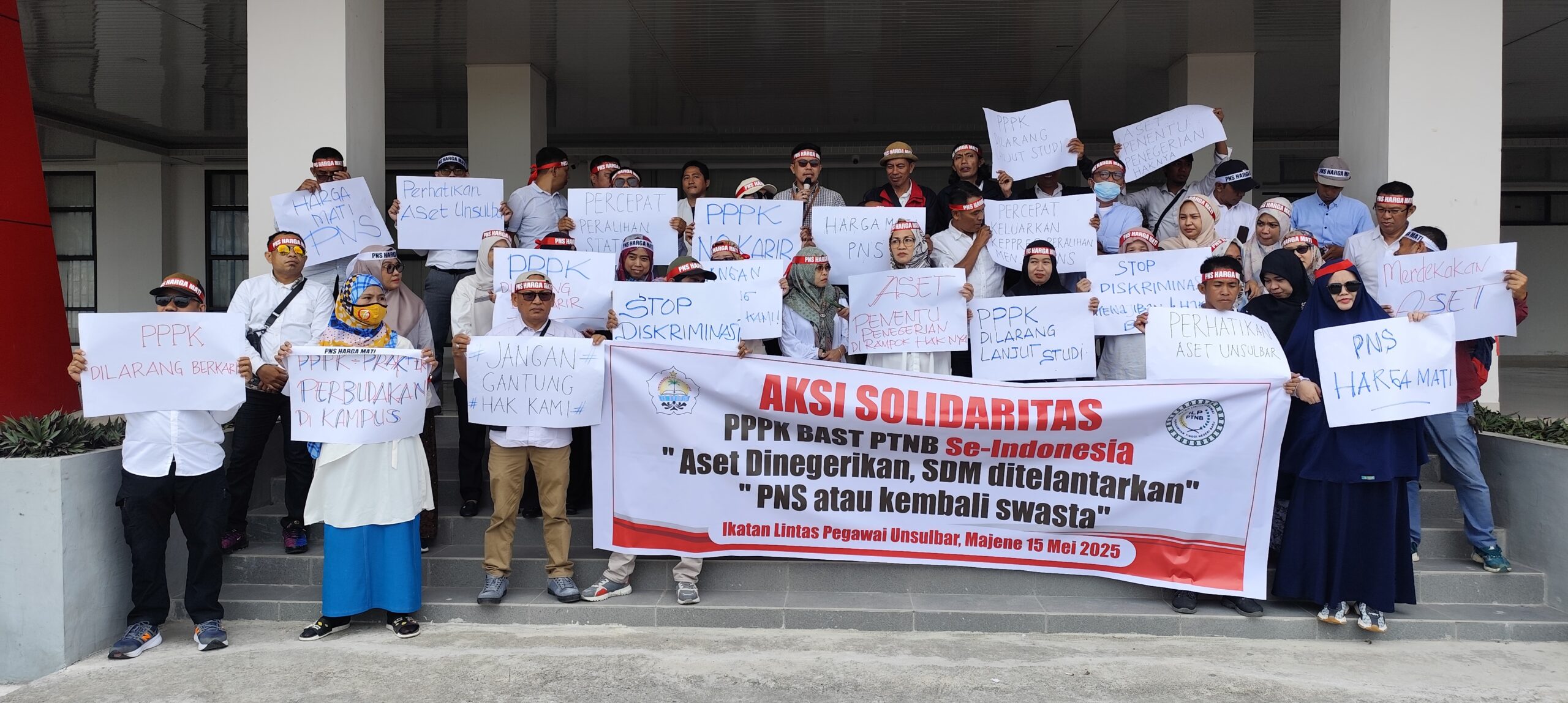 Ketua Ikatan Lintas Pegawai Unsulbar, Umar, yang juga sekaligus Sekjen Ikatan Lintas Pegawai PTNB se-Indonesia, menyatakan para PPPK telah lama berjuang membangun kampus dari awal hingga meraih status sebagai PTN.